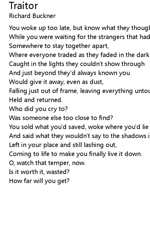 You sold what you'd saved, woke where you'd lie |