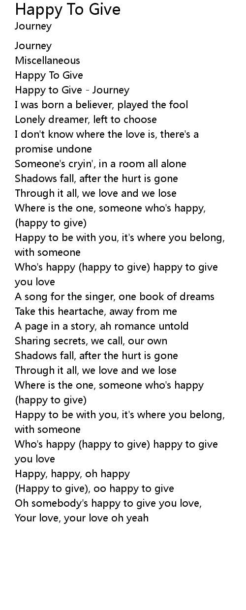 Happy to Give - Journey |