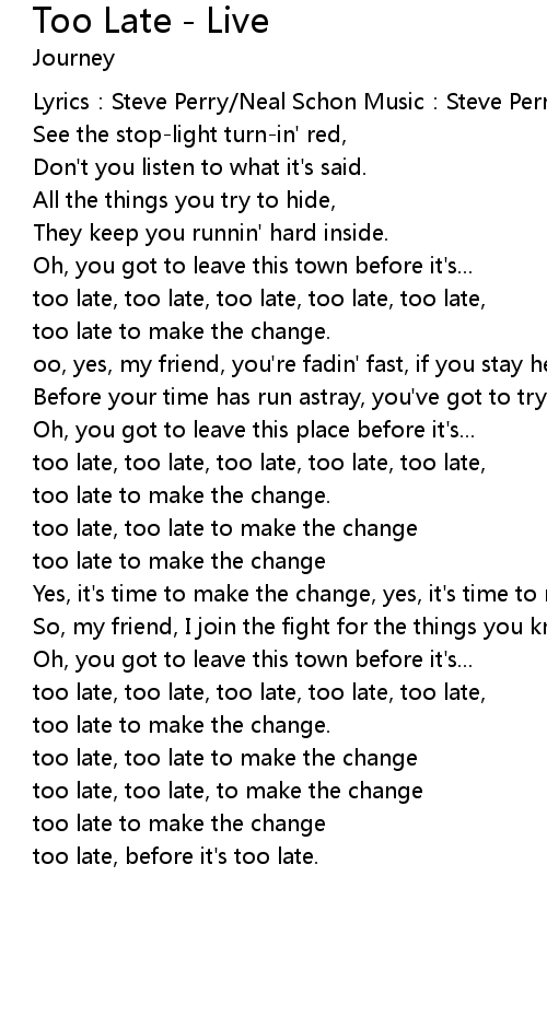 | Lyrics:Steve Perry/Neal Schon Music:Steve Perry/Neal Schon | |
