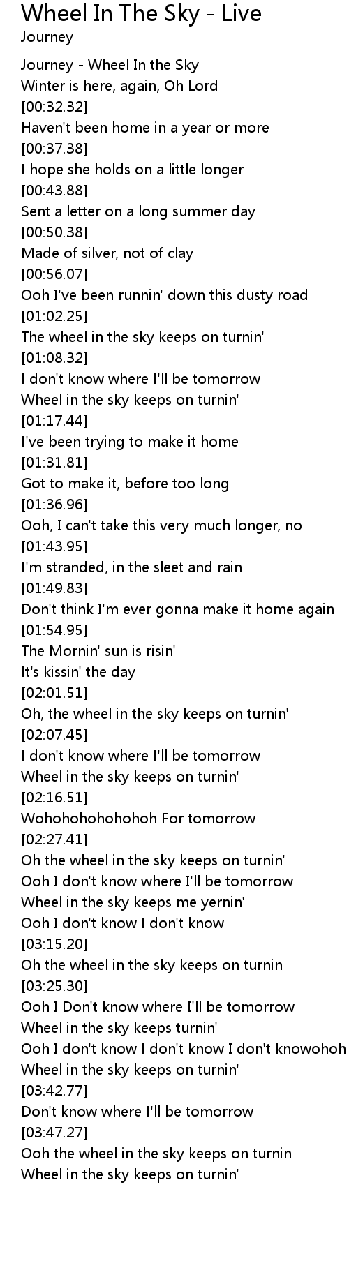 | [03:53.18] | Wheel in the sky keeps on turnin' |