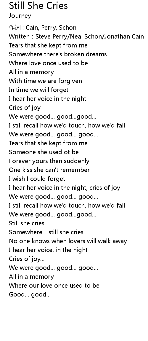 | Still she cries | |