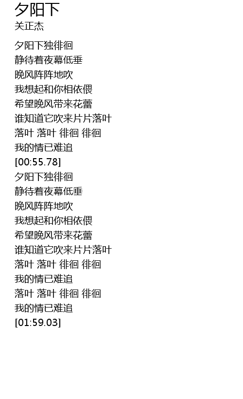 | [01:37.98] | 落叶 落叶 徘徊 徘徊 |