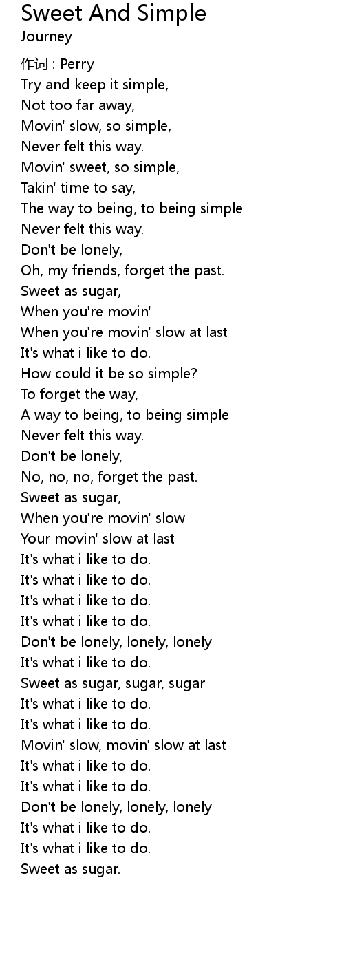 | Movin' sweet, so simple, | |