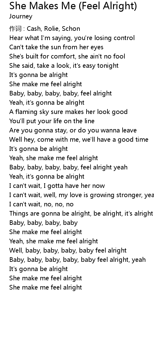 | She make me feel alright | |