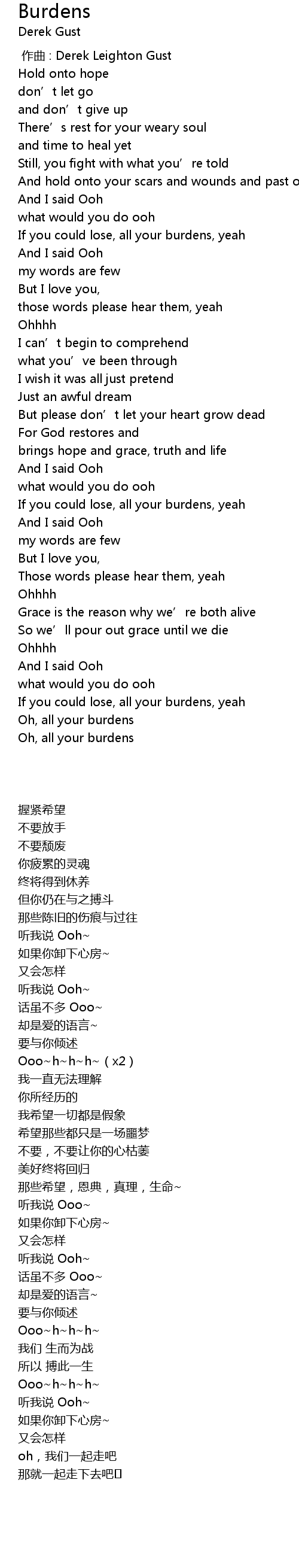 | Song | Burdens |