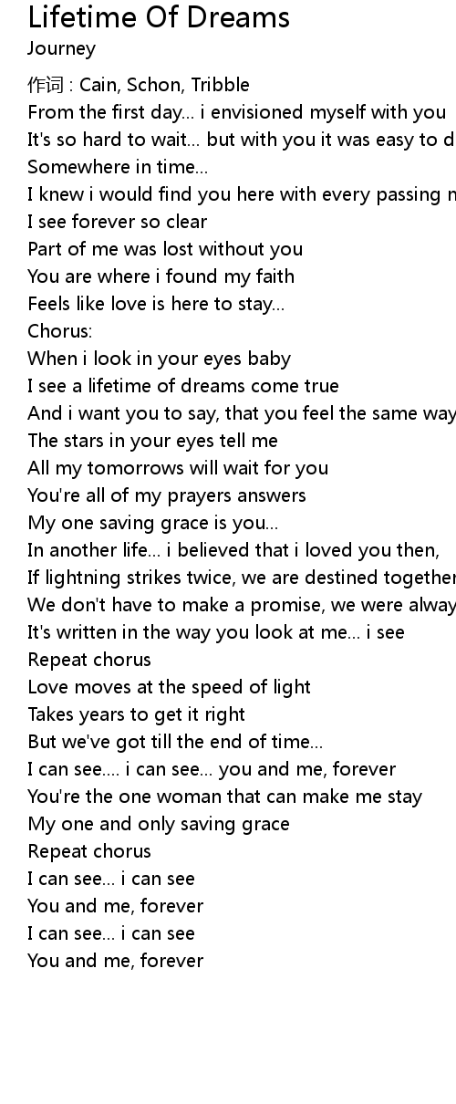 | I see a lifetime of dreams come true | |
