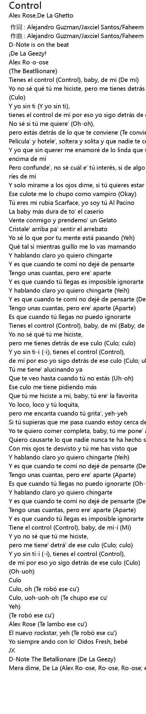 | [01:27.56] | Tienes el control (Control), baby, de mí (Baby; de mí) |