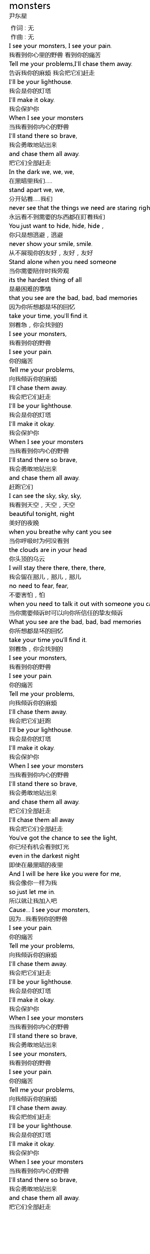| [00:04.751] | 我看到你心里的野兽 看到你的痛苦 |