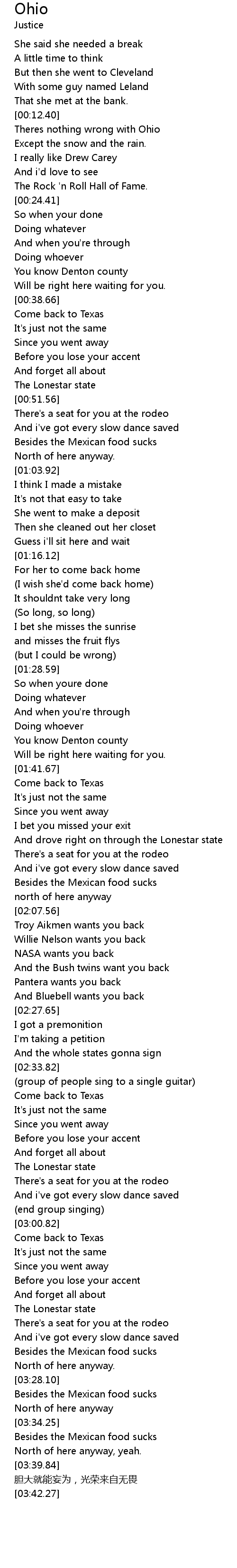 | [00:13.17] | Theres nothing wrong with Ohio |
