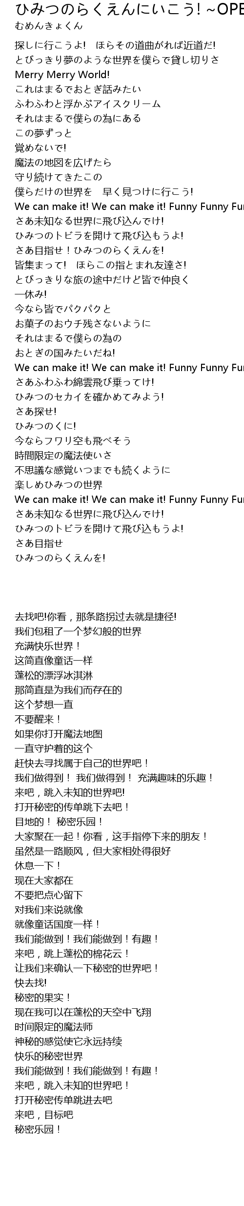 | [01:04.00] | さあ目指せ!ひみつのらくえんを! |