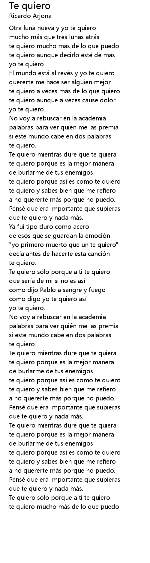 | te quiero mucho ma s de lo que puedo | |