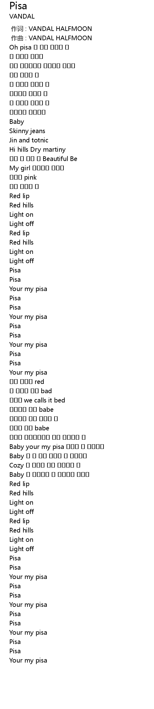 | [01:54.09] | Baby your my pisa 그러니 좀 안겨도돼 |