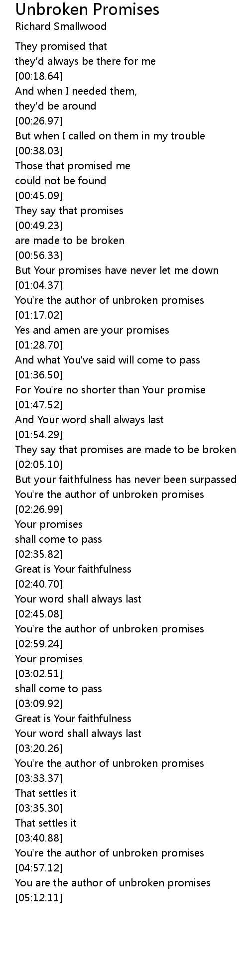 You're the author of unbroken promises |