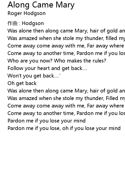 | Was alone then along came Mary, hair of gold and lips like cherries | |