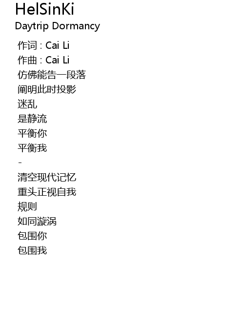 | [00:00.000] | 作词 : Cai Li |