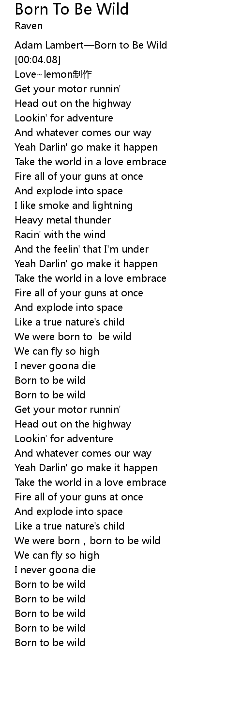 | [02:23.94] | Born to be wild |