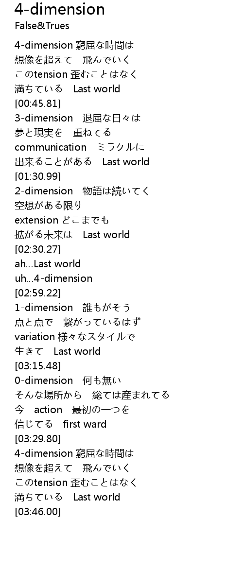| [00:31.02] | 4-dimension 窮屈な時間は |