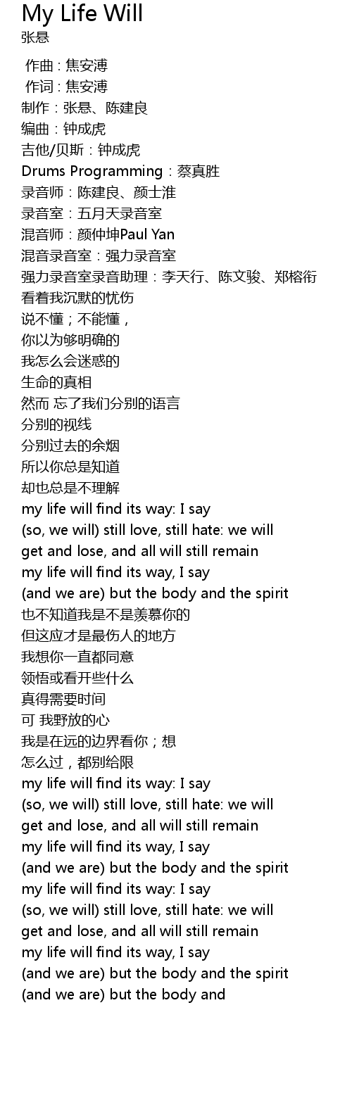| [01:00.620] | my life will find its way: I say |