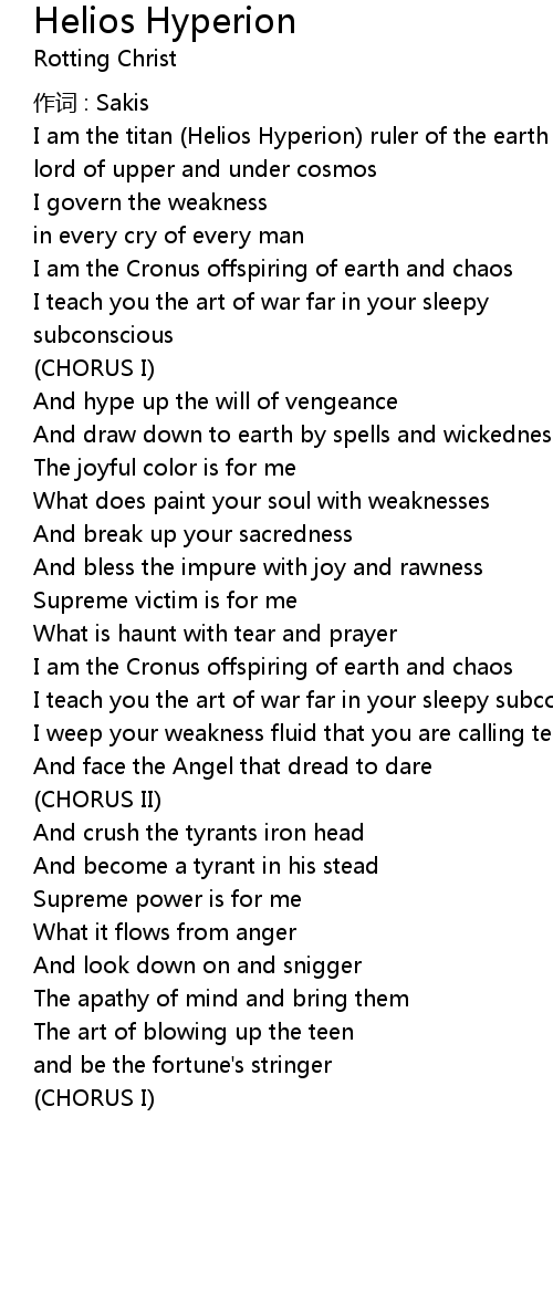 | Song | Helios Hyperion |