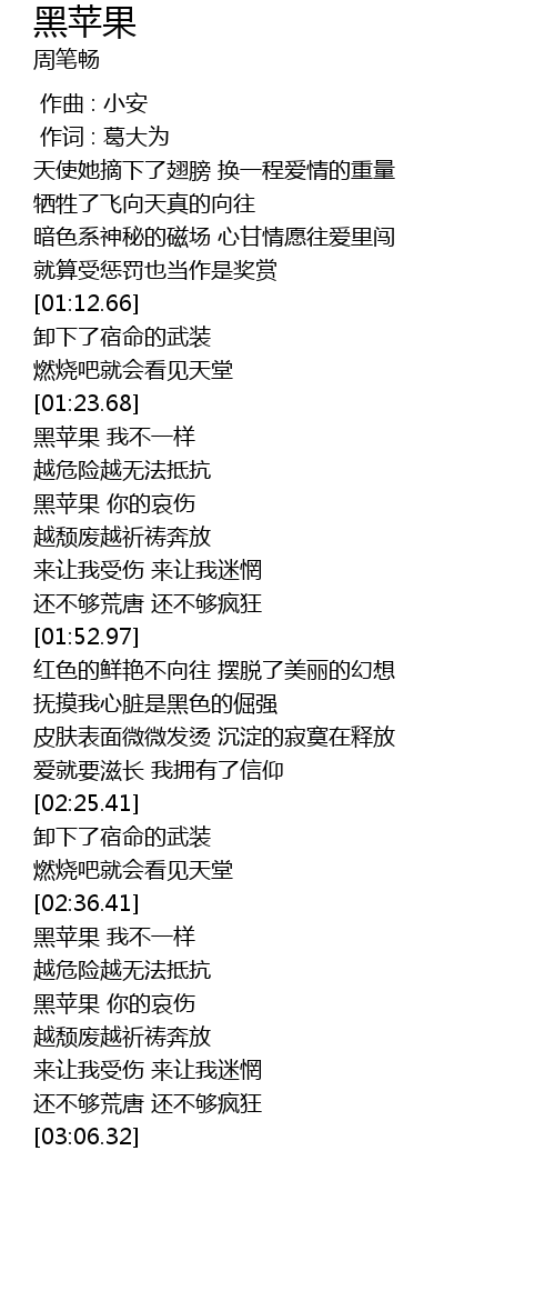 | [01:31.34] | 黑苹果 你的哀伤 |