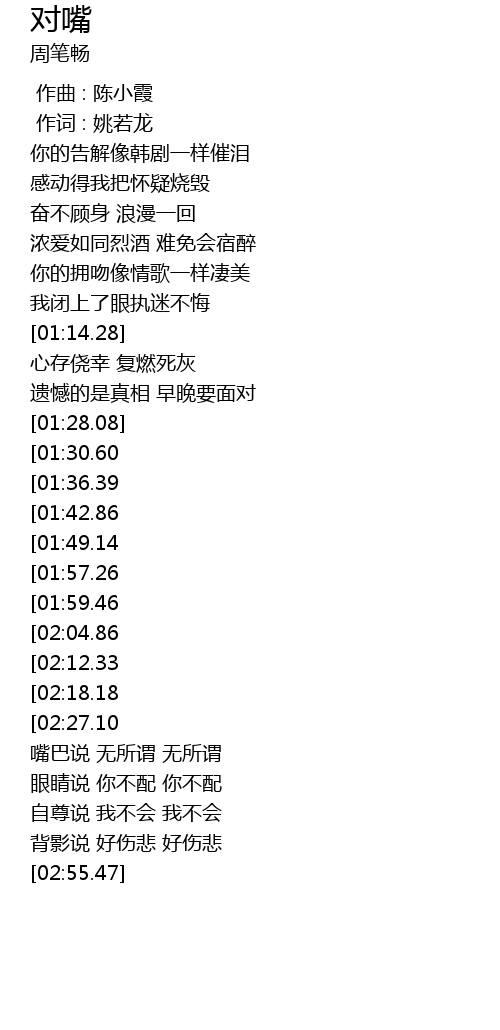 | [02:34.39] | 眼睛说 你不配 你不配 |