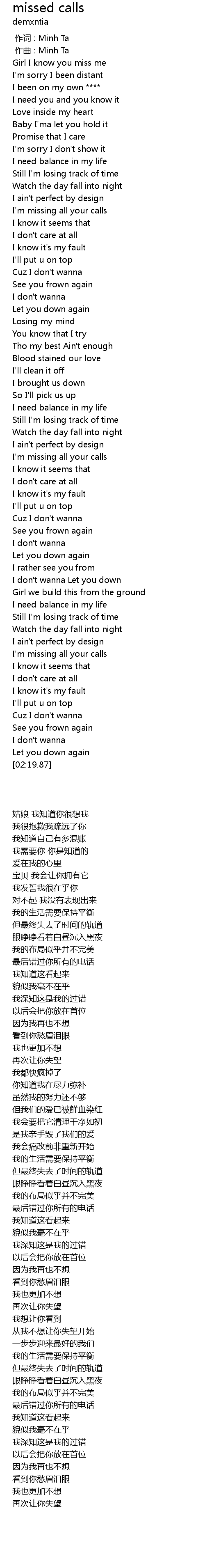 | [00:00.000] | 作词 : Minh Ta |