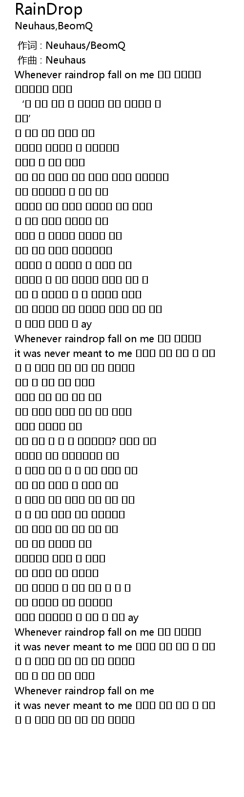 | [00:03.880] | Whenever raindrop fall on me 카펠 들어갔어 |