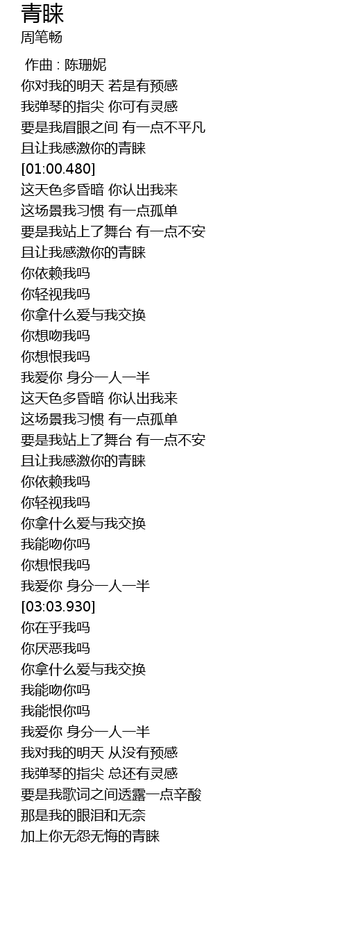 | [03:21.840] | 你拿什么爱与我交换 |