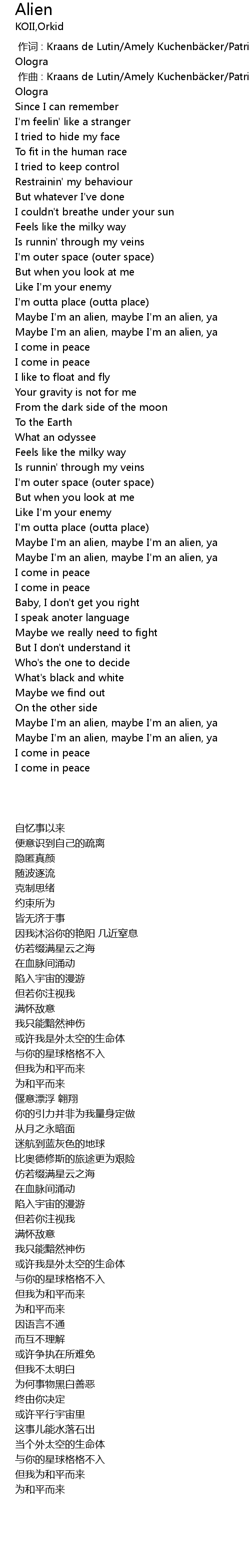 | [01:39.00] | Maybe I'm an alien, maybe I'm an alien, ya |