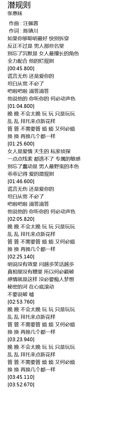 | [01:41.850] | 乖乖记得 爱的潜规则 |