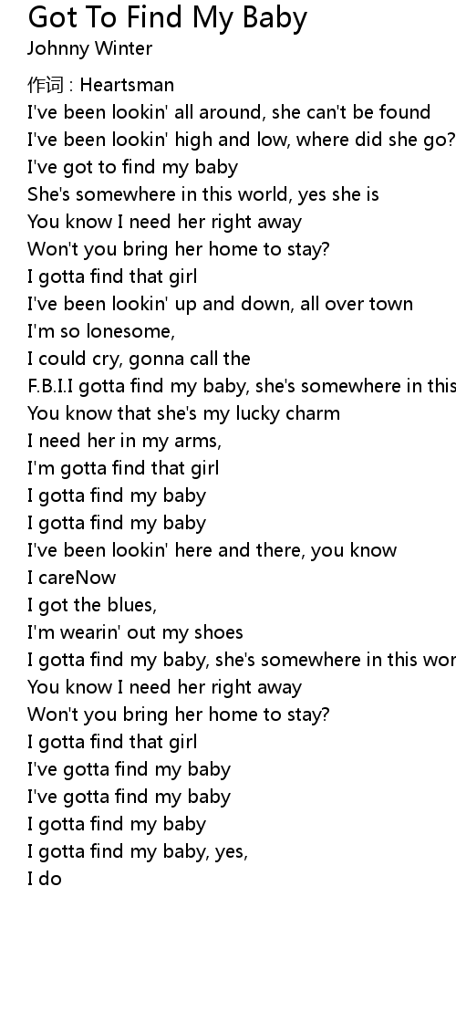 | I gotta find my baby | |