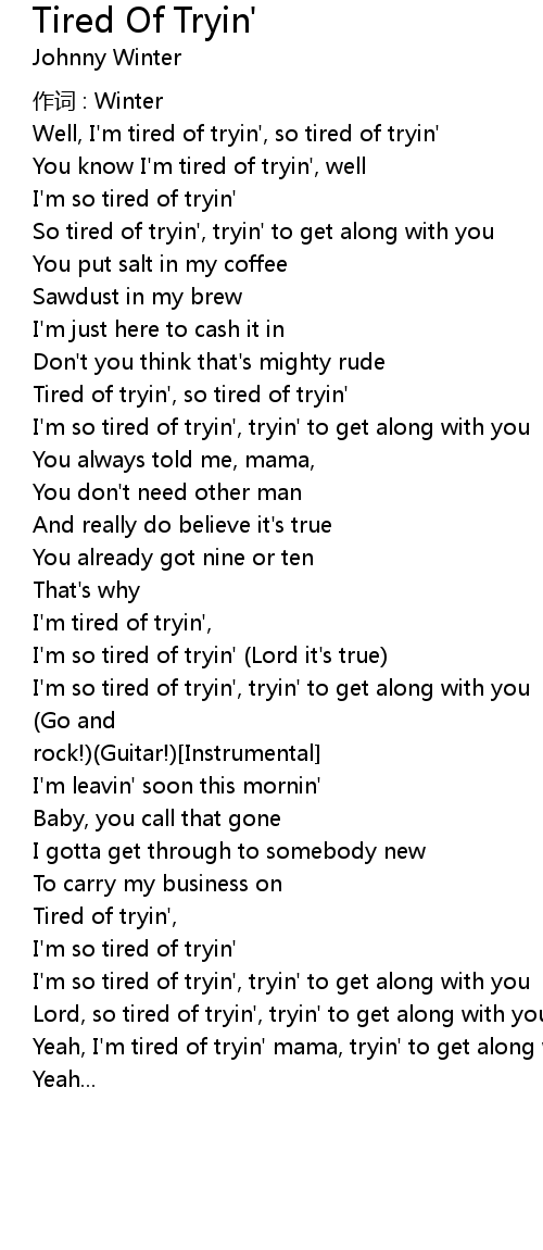 | Well, I' m tired of tryin', so tired of tryin' | |