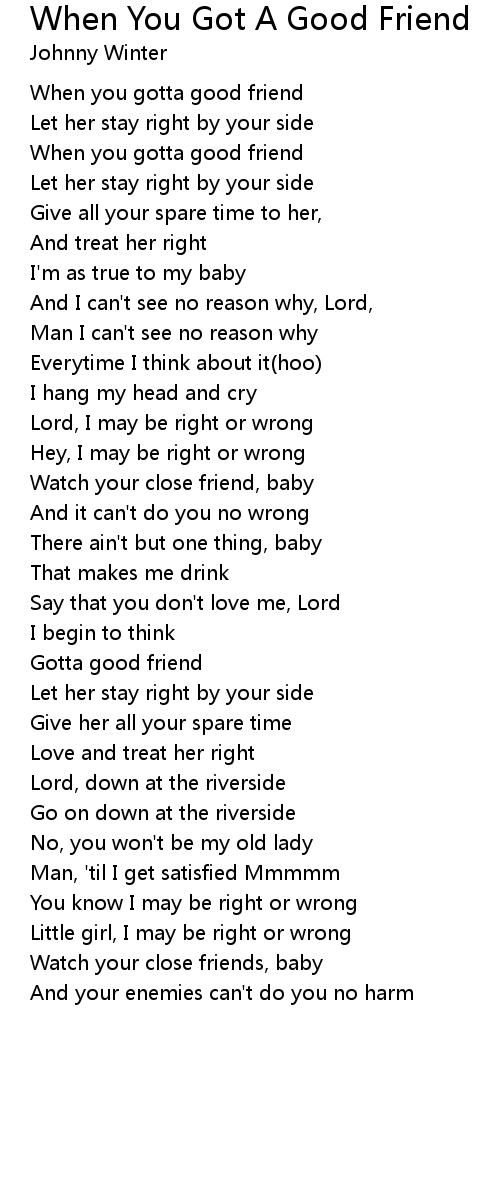 When you gotta good friend |