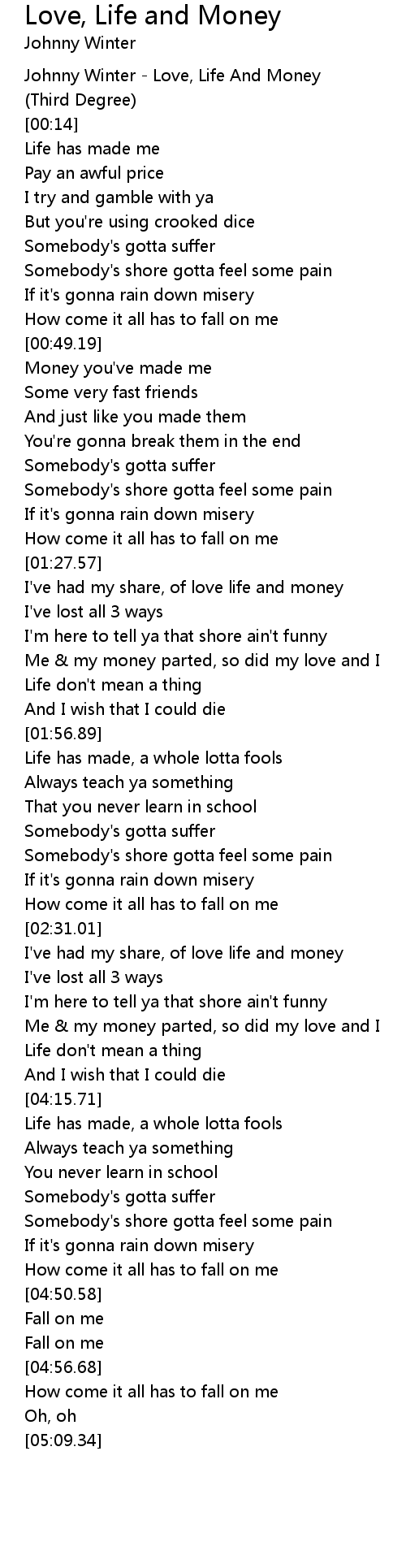 Johnny Winter - Love, Life And Money |