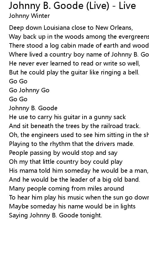 Where lived a country boy name of Johnny B. Goode... |