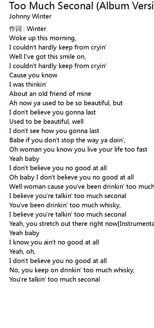 | Song | Too Much Seconal (Album Version) |