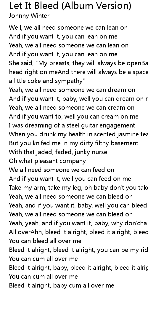 Bleed it alright, baby, bleed it alright, bleed it alright |
