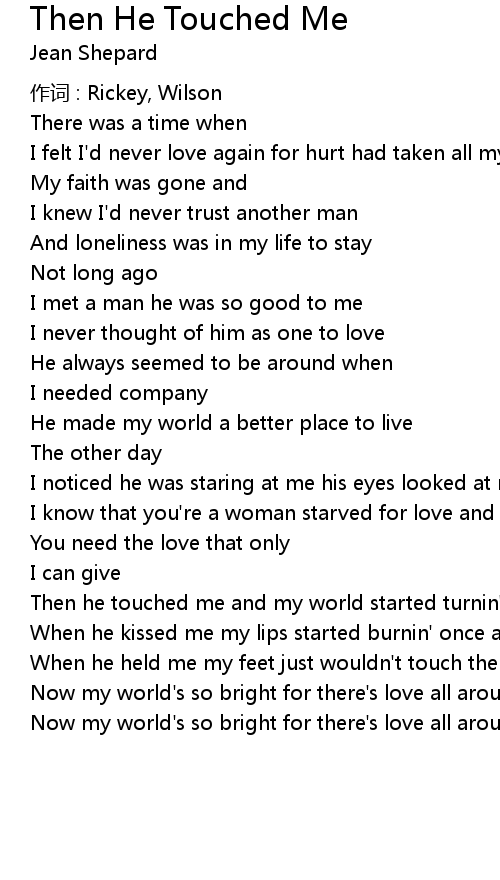 | Song | Then He Touched Me |