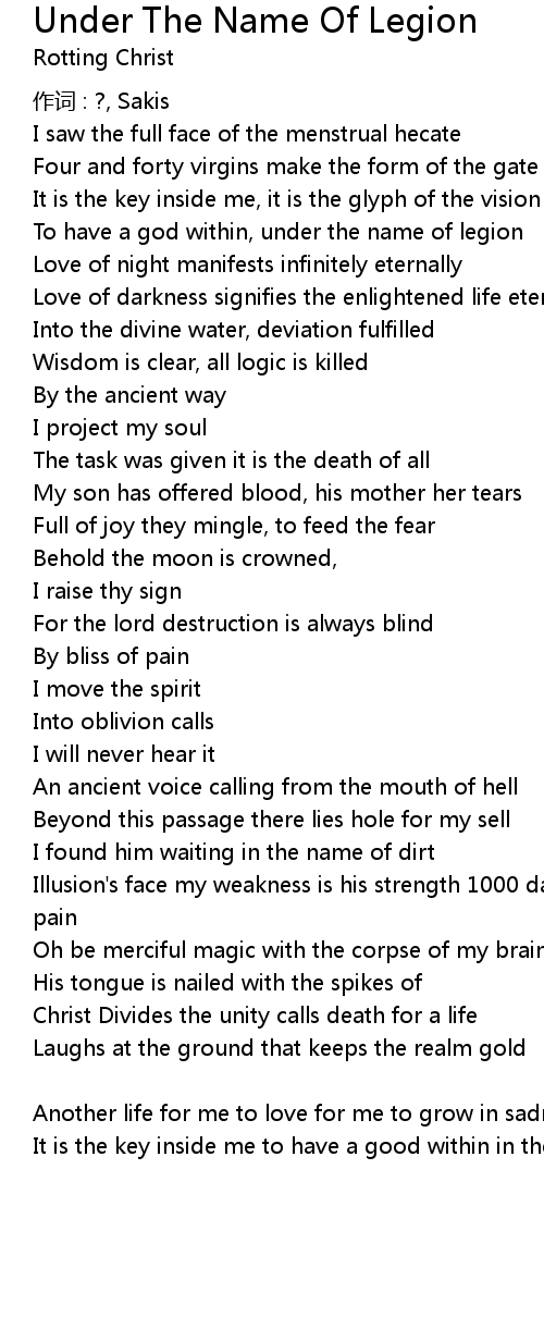 | Song | Under The Name Of Legion |