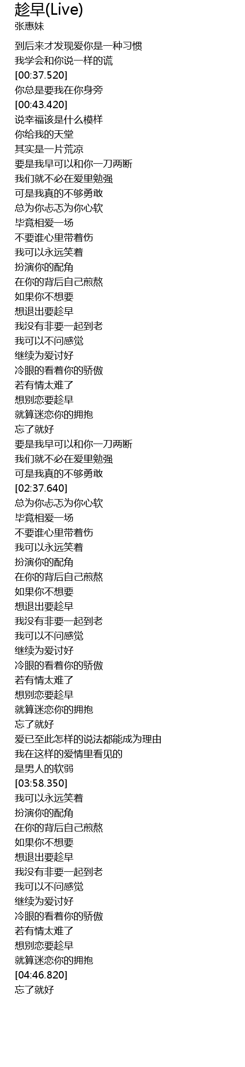 | [04:38.120] | xiǎng bié liàn yào chèn zǎo |