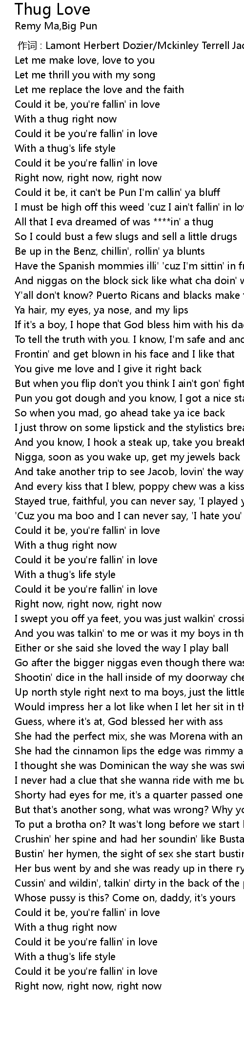 | [00:48.60] | All that I eva dreamed of was ****in' a thug |