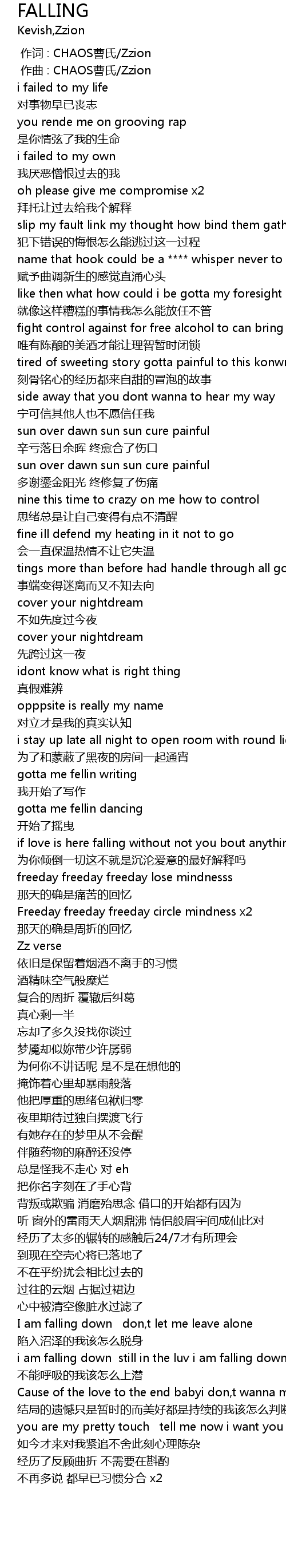 | [00:00.000] | 作词 : CHAOS曹氏/Zzion |