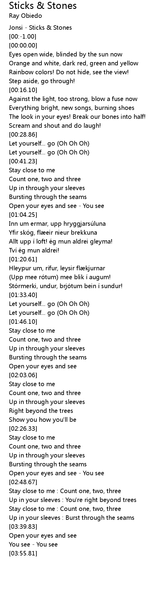 | [00:-2.00] | Jonsi Sticks Stones |