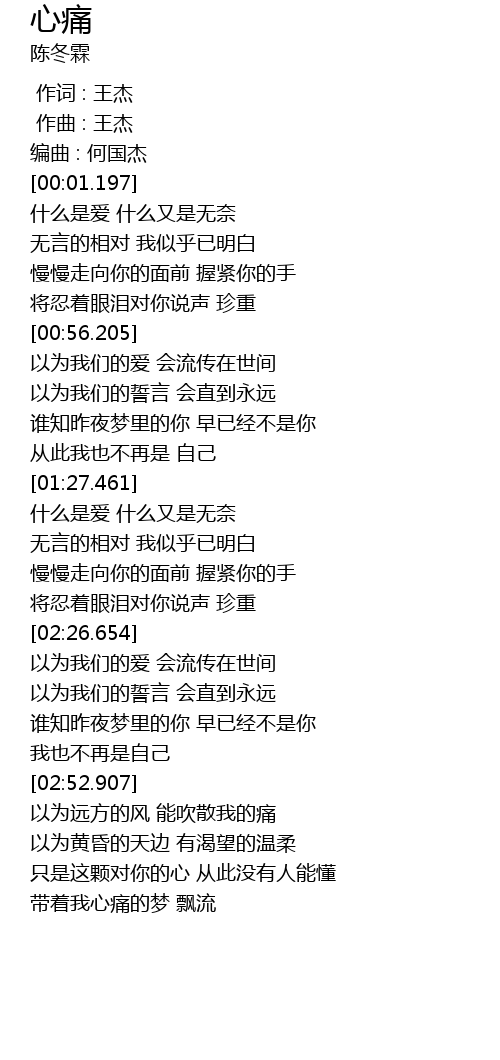 | [03:05.160] | 只是这颗对你的心 从此没有人能懂 |