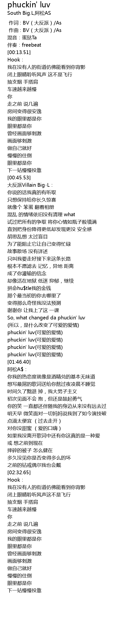 | [01:32.55] | phuckin' luv kě ài de ài qíng |