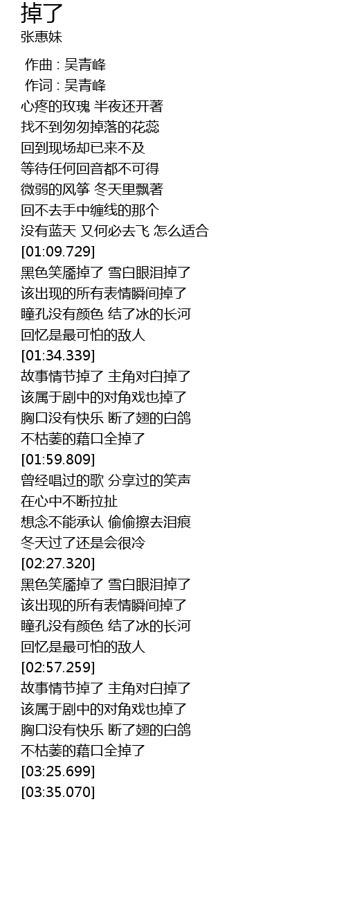 | [02:34.310] | hēi sè xiào yè diào le xuě bái yǎn lèi diào le |