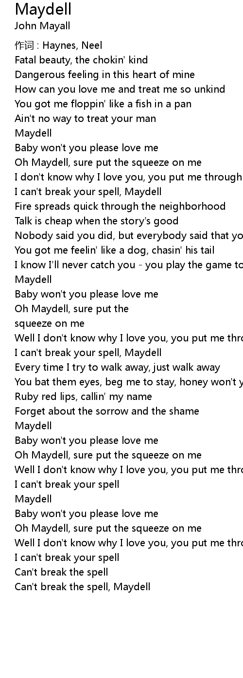 | You bat them eyes, beg me to stay, honey won't you stay | |