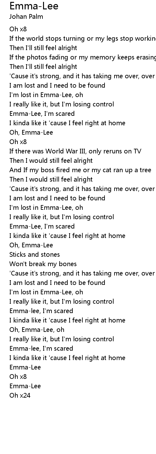 I'm lost in Emma-Lee, oh |