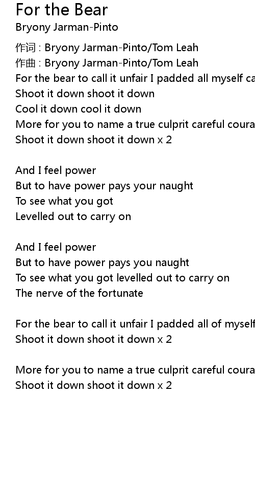 | 作词 : Bryony Jarman-Pinto/Tom Leah | |