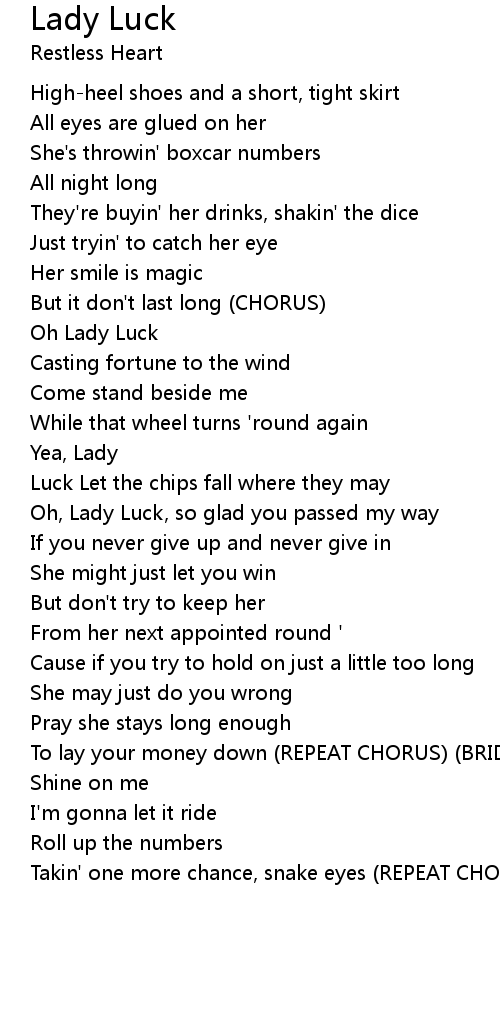 Takin' one more chance, snake eyes (REPEAT CHORUS) |